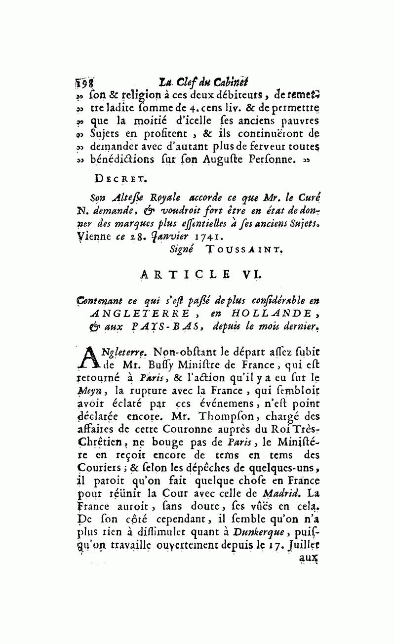 | Clef du cabinet des princes de l'Europe (la) : Fascicule 09 - page 198 |