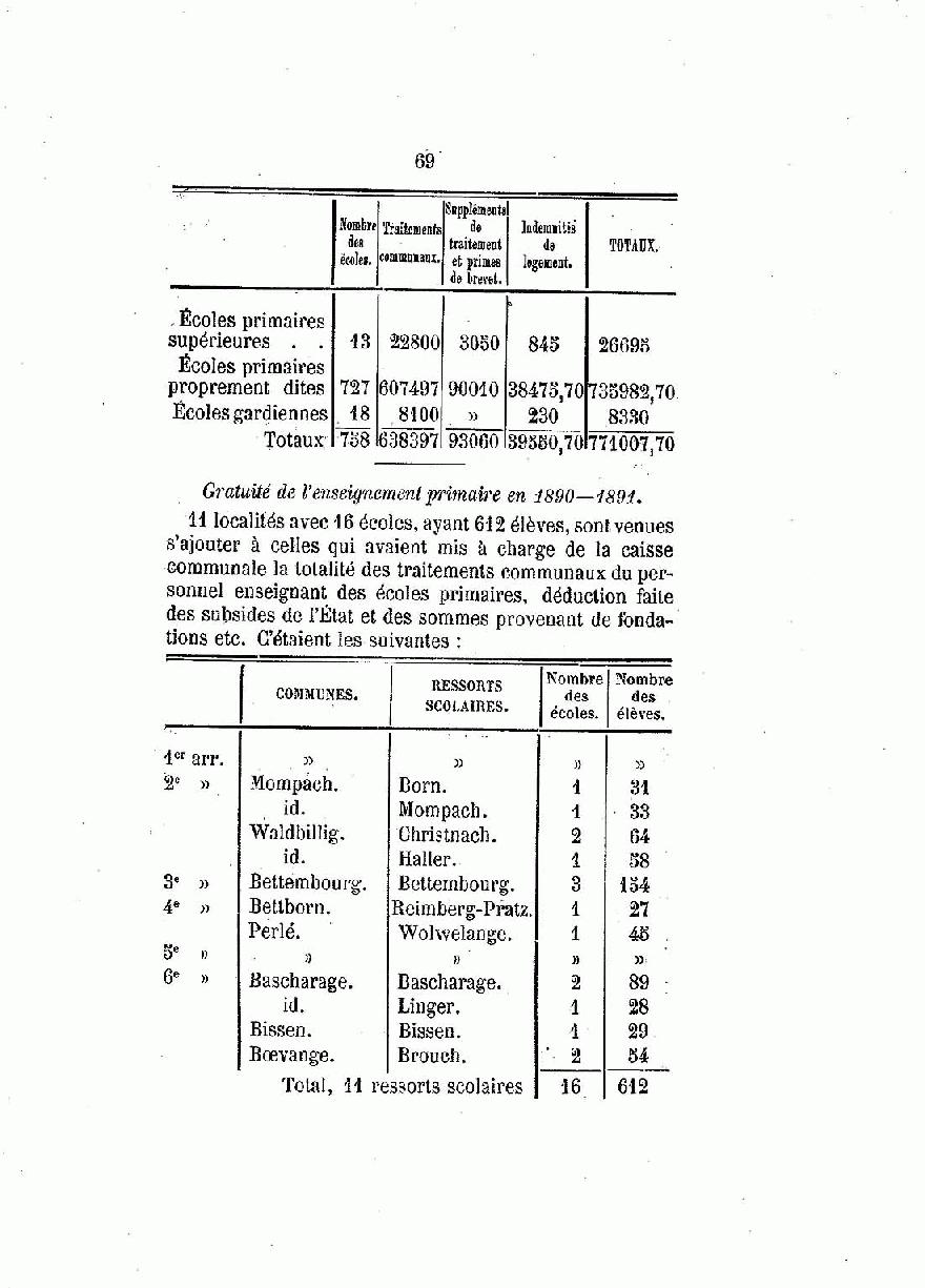 | Rapport sur la situation de l'instruction primaire dans le Grand Duché de Luxembourg 1890-1891 : Volume 1890-1891 - page 69 |