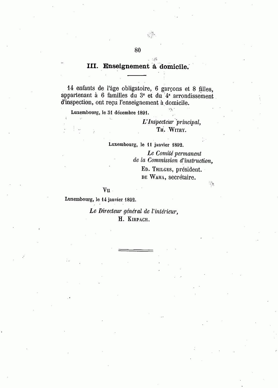 | Rapport sur la situation de l'instruction primaire dans le Grand Duché de Luxembourg 1890-1891 : Volume 1890-1891 - page 80 |