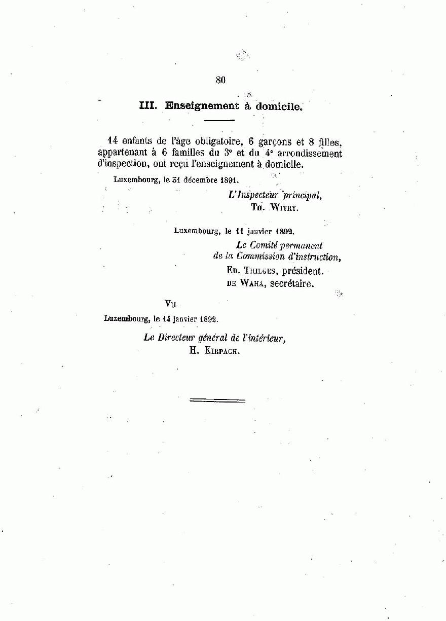 | Rapport sur la situation de l'instruction primaire dans le Grand Duché de Luxembourg 1890-1891 : Volume 1890-1891 - page 80 |