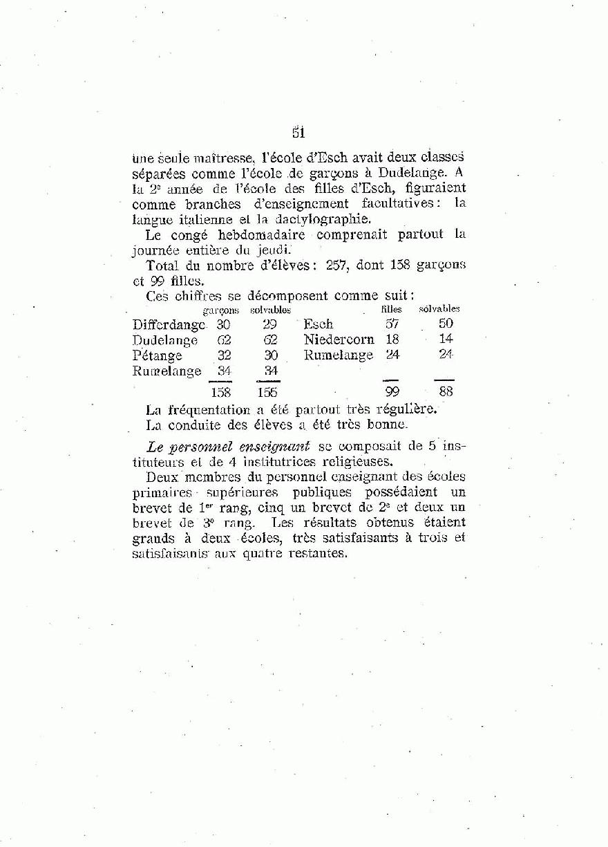 | Rapport sur la situation de l'instruction primaire dans le Grand Duché de Luxembourg 1907-1908 : Volume 1907-1908 - page 51 |