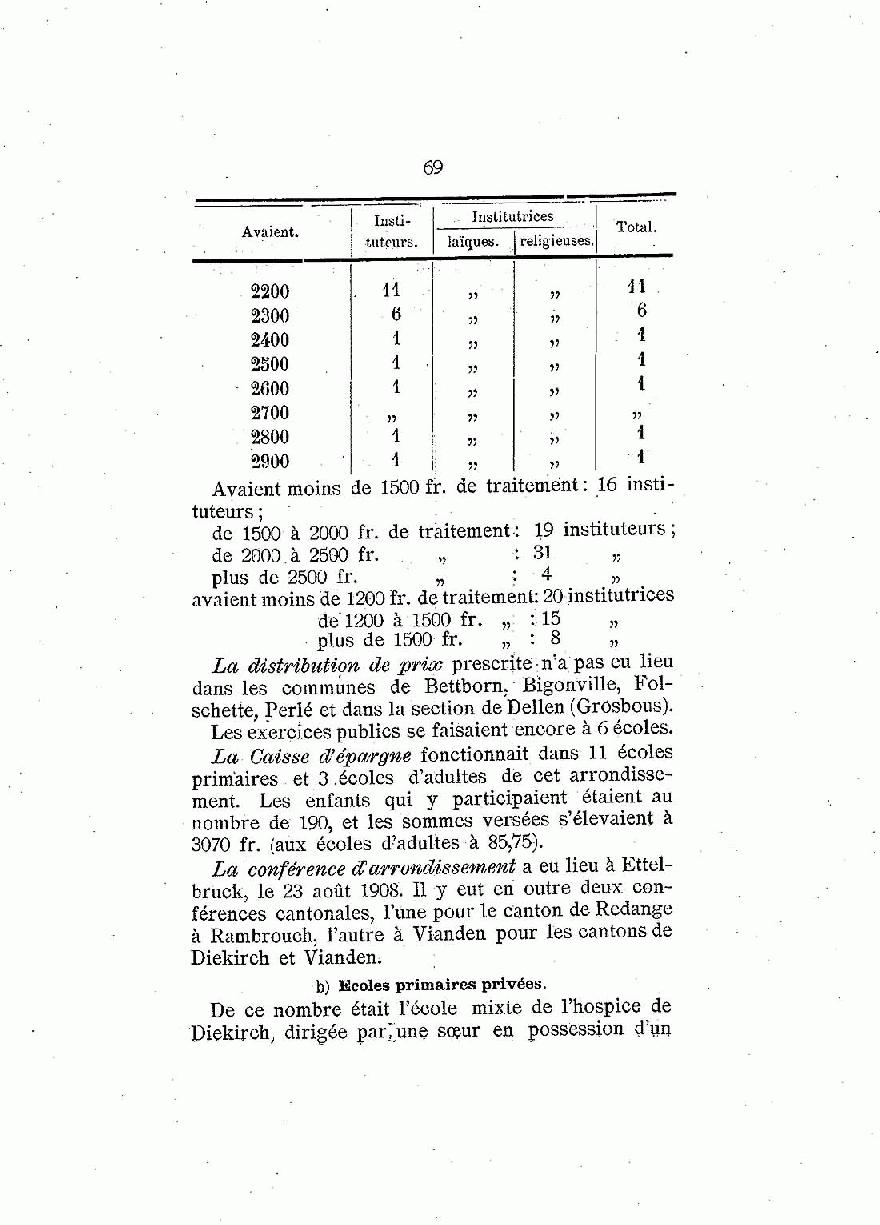 | Rapport sur la situation de l'instruction primaire dans le Grand Duché de Luxembourg 1907-1908 : Volume 1907-1908 - page 69 |