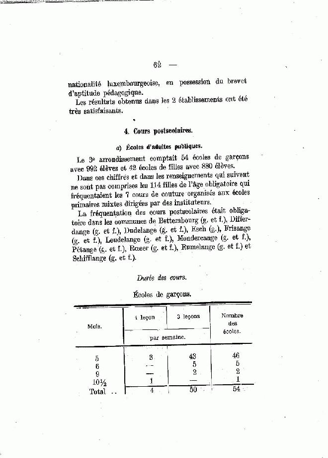 | Rapport sur la situation de l'instruction primaire dans le Grand Duché de Luxembourg 1913-1914 : Volume 1913-1914 - page 62 |