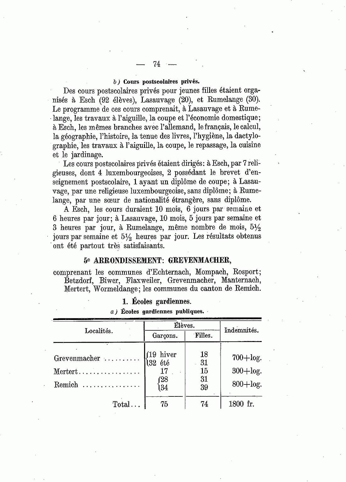 | Rapport sur la situation de l'instruction primaire dans le Grand Duché de Luxembourg 1915-1916 : Volume 1915-1916 - page 74 |