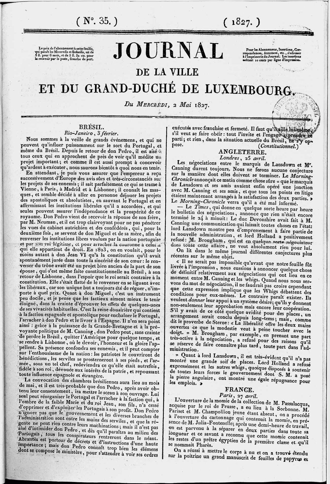 | Journal de la ville de du Grand-Duché de Luxembourg : Fascicule 035 - page 1 |