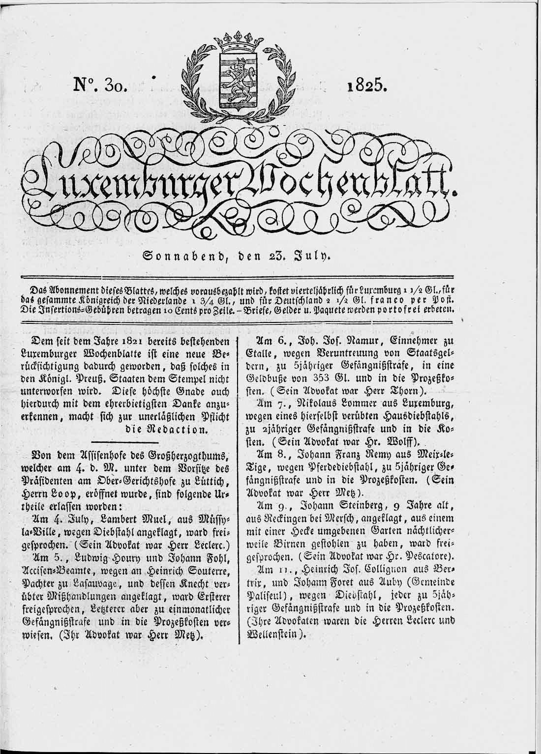 | Luxemburger Wochenblatt : Fascicule 30 - page 1 |