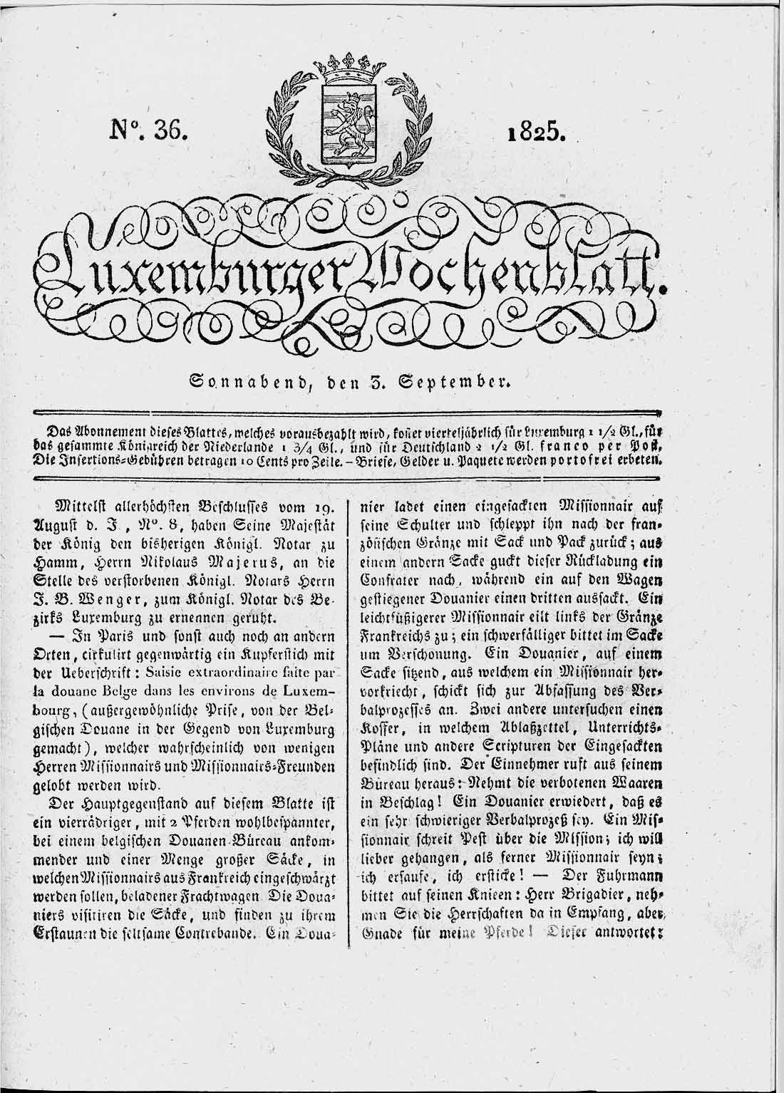 | Luxemburger Wochenblatt : Fascicule 36 - page 1 |