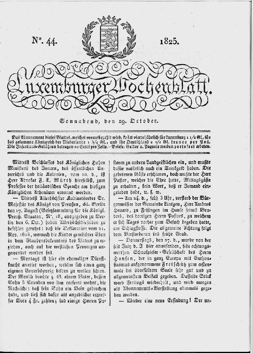 | Luxemburger Wochenblatt : Fascicule 44 - page 1 |