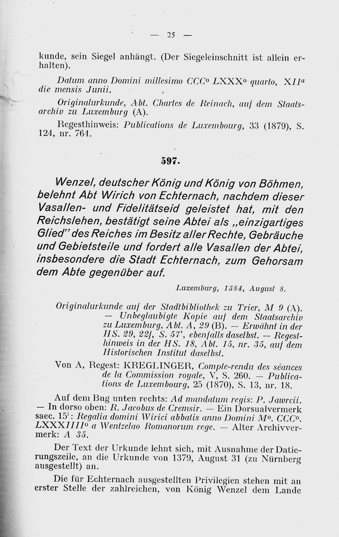 | Band 9: Mit dem vorhergehenden Band die Quellen der Grundherrschaft Echternach enthaltend. : Volume 09 - page 25 |
