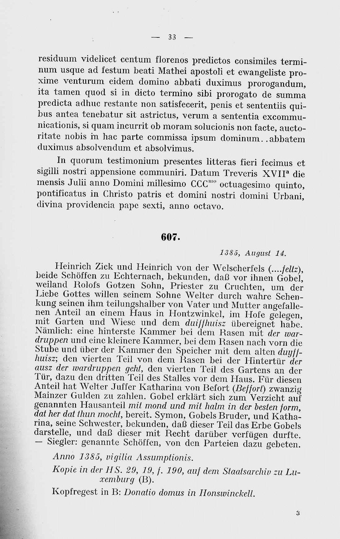 | Band 9: Mit dem vorhergehenden Band die Quellen der Grundherrschaft Echternach enthaltend. : Volume 09 - page 33 |