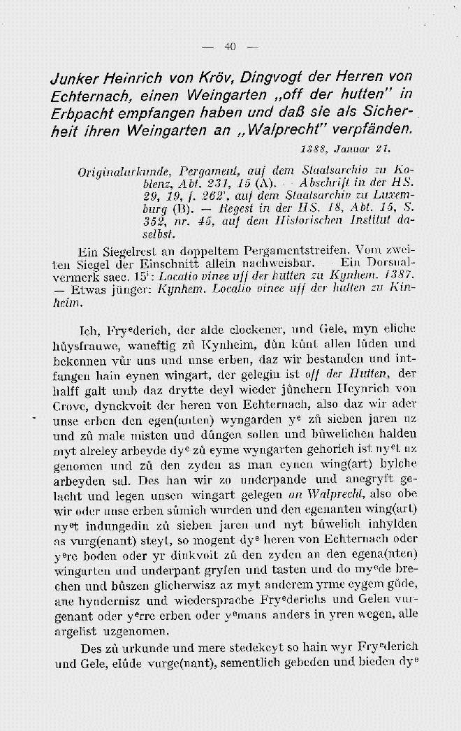 | Band 9: Mit dem vorhergehenden Band die Quellen der Grundherrschaft Echternach enthaltend. : Volume 09 - page 40 |