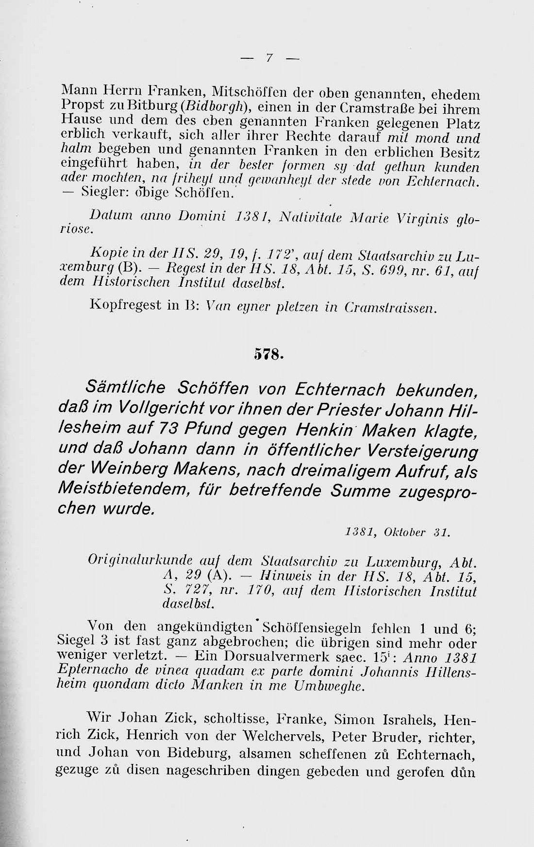 | Band 9: Mit dem vorhergehenden Band die Quellen der Grundherrschaft Echternach enthaltend. : Volume 09 - page 7 |