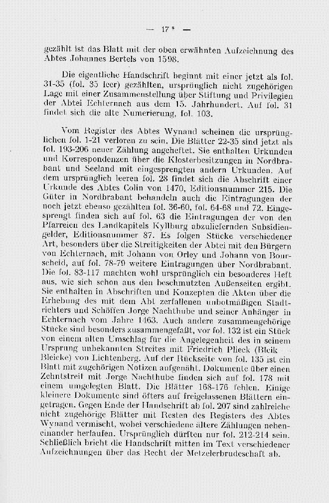 | Band 10: Mit Band XI die Quellen zur Geschichte der Abtei Echternach, des Hospitals und des Frauenkloster Sankt Klara enthaltend. : Volume 10 - page 17* |
