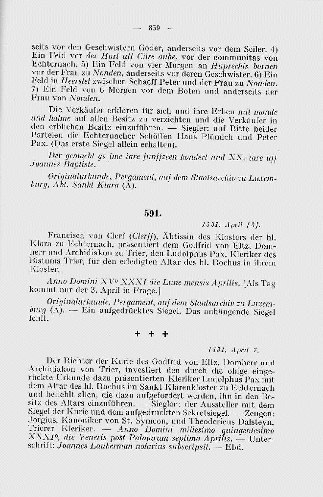 | Band 10: Mit Band XI die Quellen zur Geschichte der Abtei Echternach, des Hospitals und des Frauenkloster Sankt Klara enthaltend. : Volume 10 - page 859 |